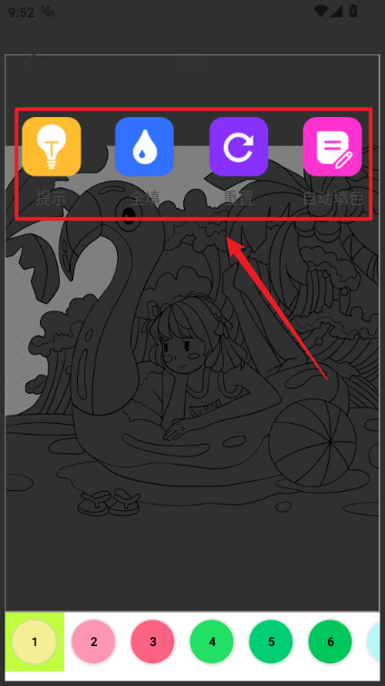 3、上色界面有提示,自动填色等功能可以用