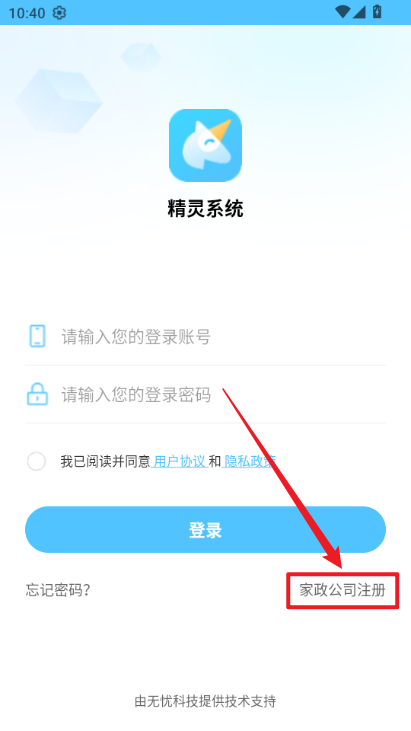 1、进入软件后,点击家政公司注册