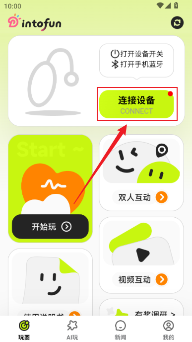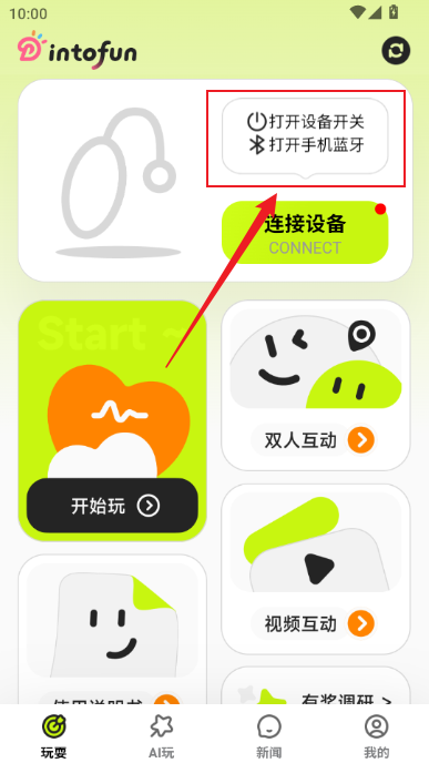 3、点击连接设备,接着点击开始玩或者双人互动即可