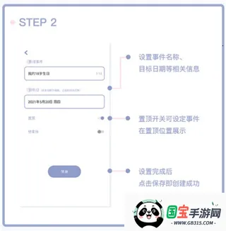 1、设置事件名称、目标日期等相关信息;