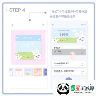 “样式”中可设置各种可爱外观,长按事件可拖动排序。