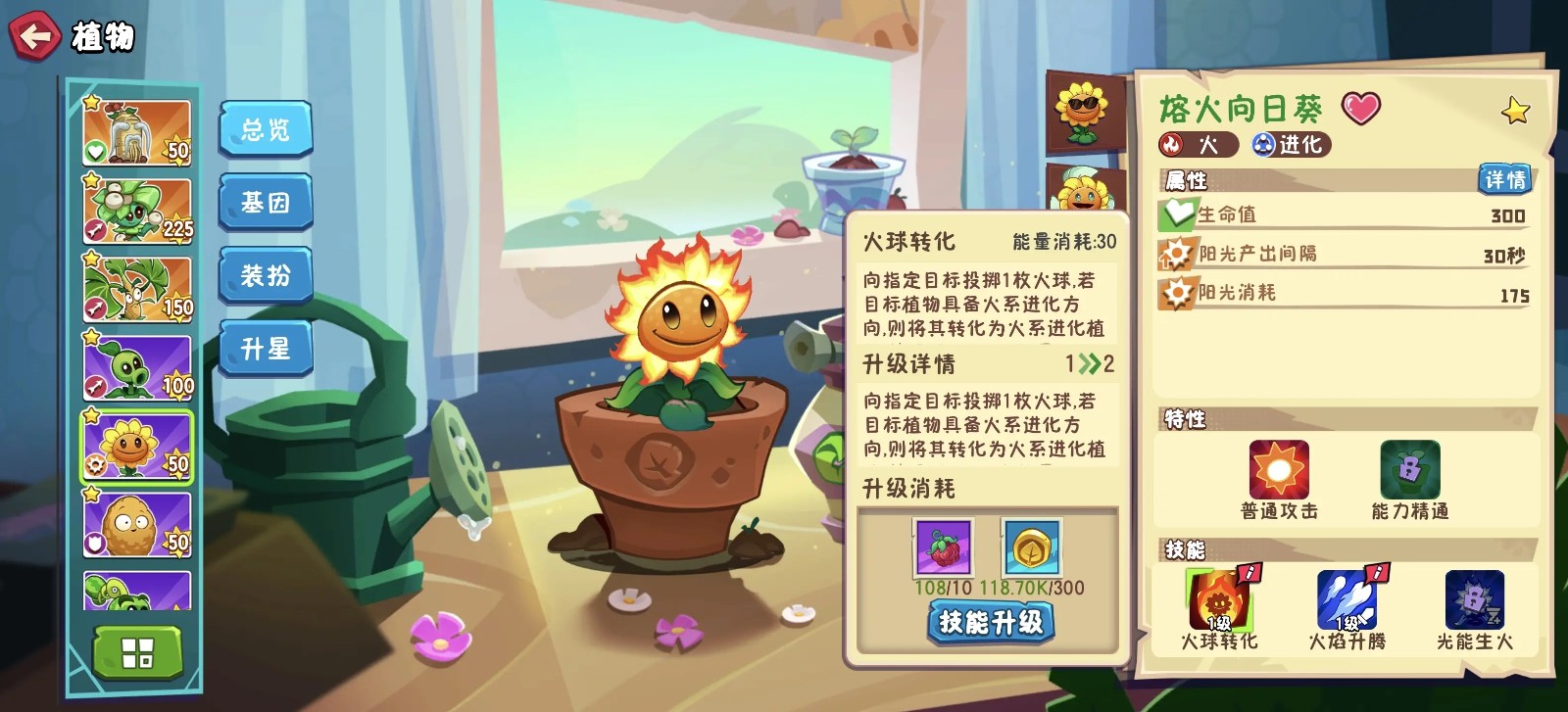 熔火向日葵:会为前方的一株熔火植物进行升级提升能力。