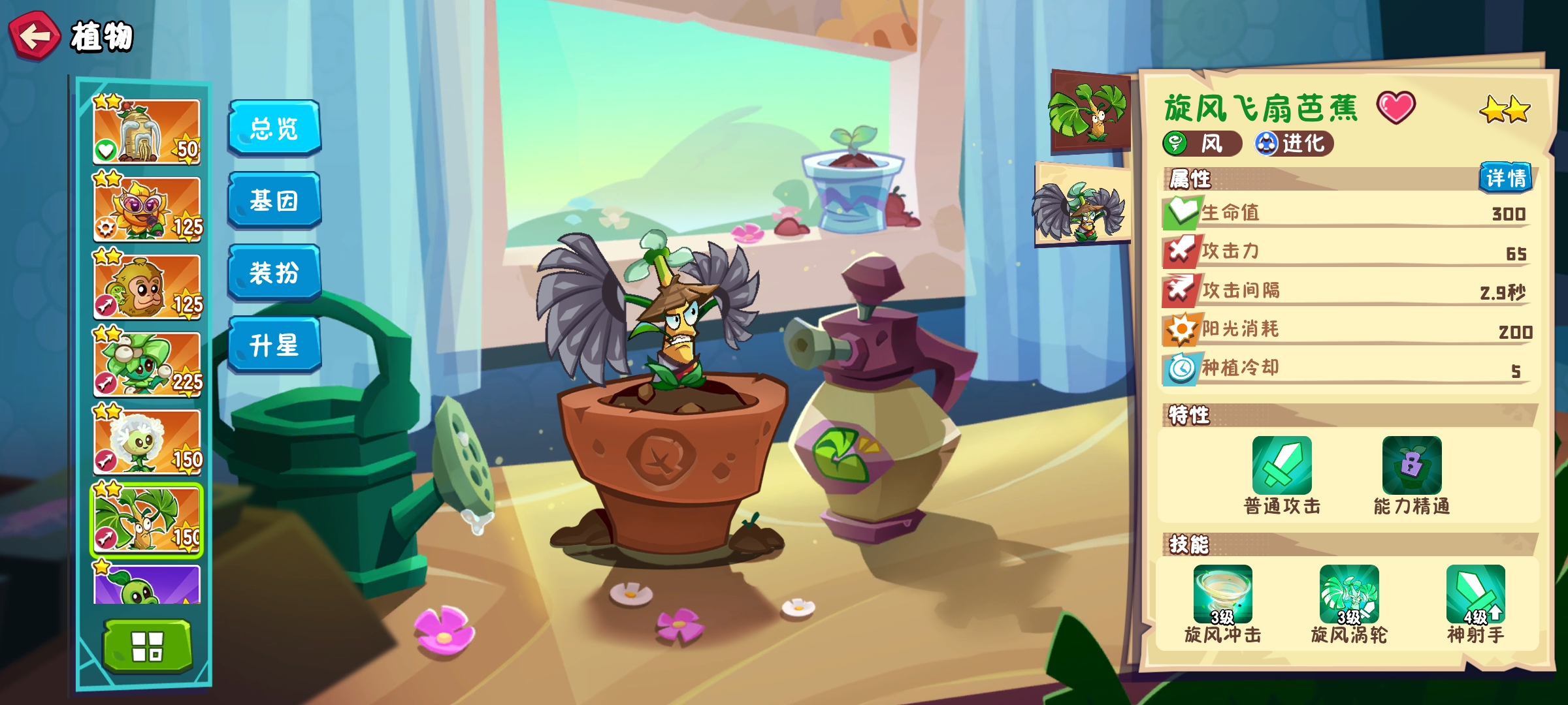 玩过二代应该很熟悉了,但很可惜这作猕猴桃数值非常保守,可能是因为白送的缘故吧,送的太猛了就没人氪了。好在阳光消耗只要125,比芭蕉还是强一些的。