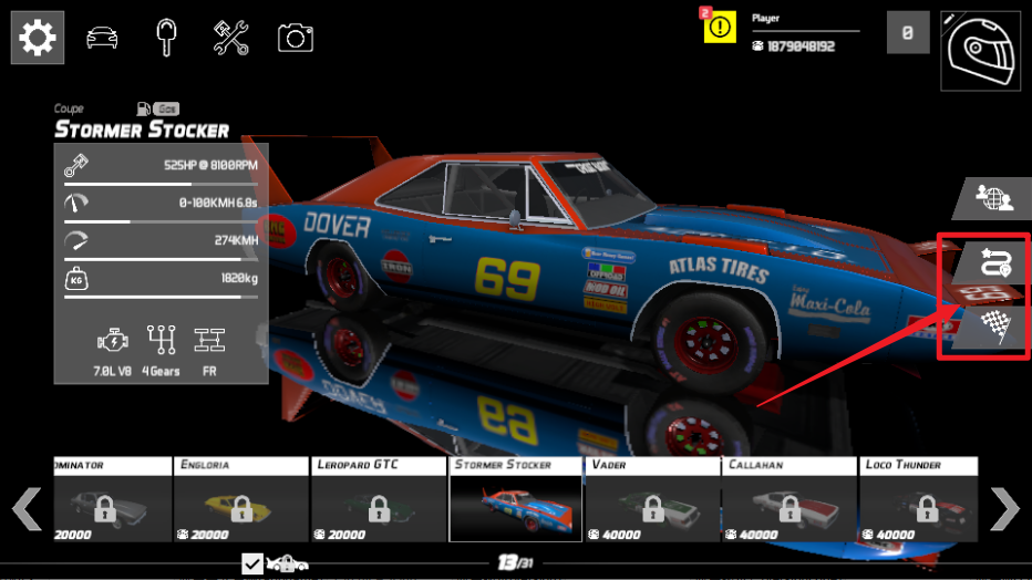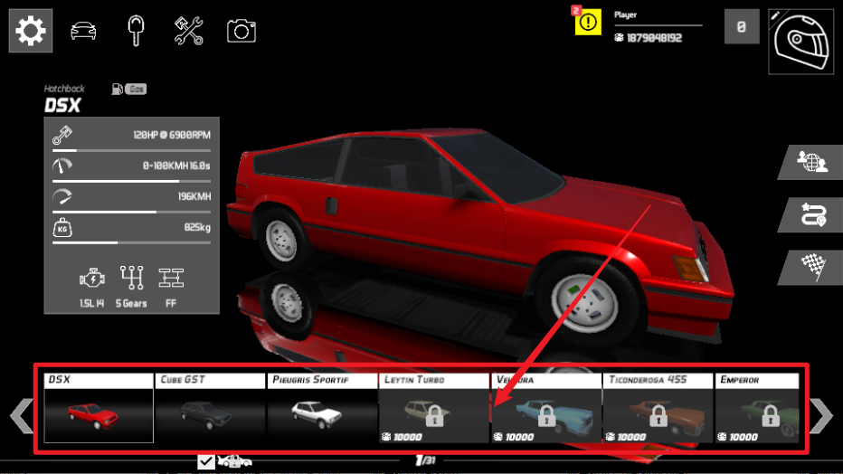 1、进入游戏后,可以看到下方有各种类型的车型可以解锁