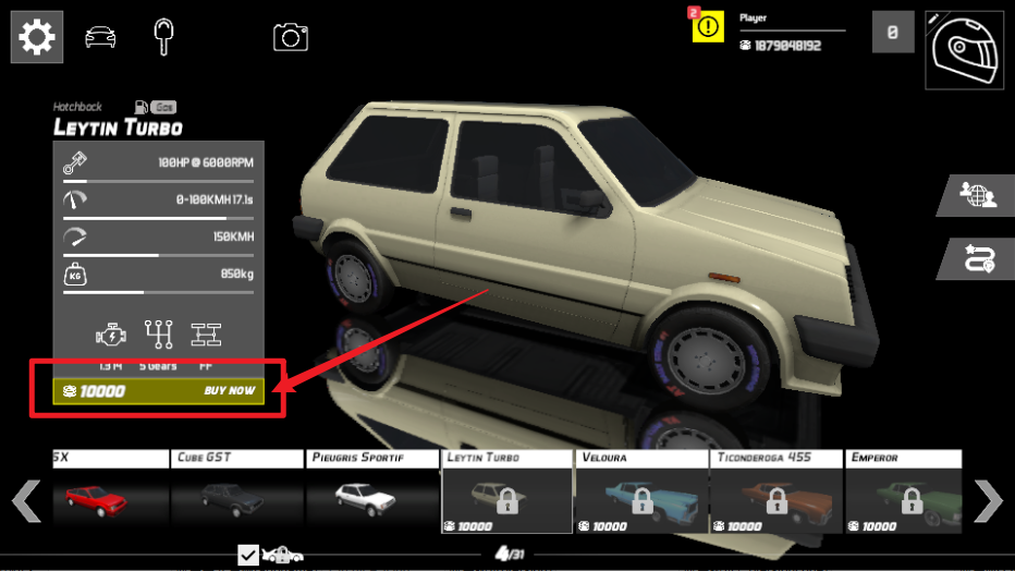 2、选择喜欢的车型,点击左边的buy now解锁