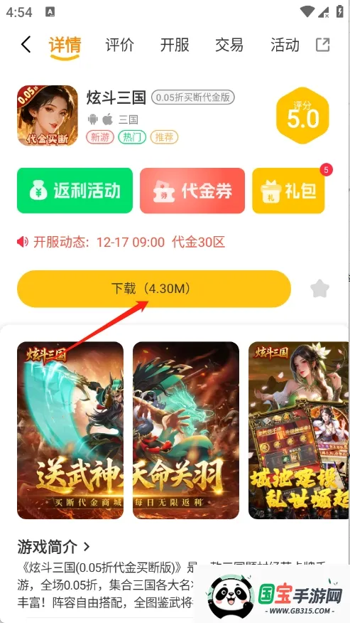 5、玩家点开想玩的游戏进入详情页,点击下载,等待安装完成即可。