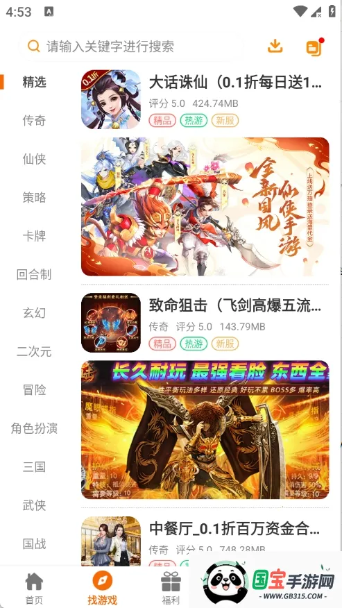 1. 资源丰富:涵盖传奇、仙侠、策略、卡牌等多种类型游戏,均可免费快速下载。