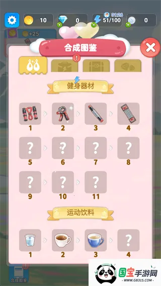 3、解锁器材、运动饮料、化妆盒、运动器材等图鉴,获取体力奖励。