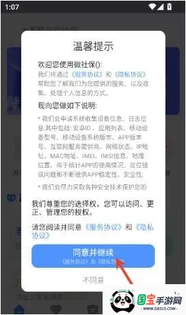 1、首先打开应用点击“同意并继续”按钮来进入app中。